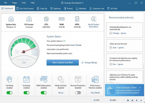 Egy átfogó program-csomag, amellyel a Windows operációs rendszer teljesítményét finomhangolhatjuk és optimalizálhatjuk. A szoftver optimalizáláshoz remek. Az Auslogics BoostSpeed Windows konfiguráláshoz is biztosít funkciókat.