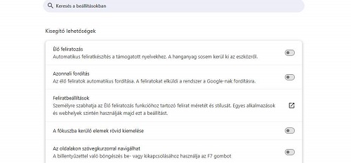 Integrált funkciót tartalmaz a Google Chrome élő feliratozási műveletekhez