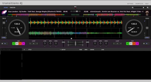 A Transitions DJ egy ingyenes DJ program, amely lejátszási listák hozzáférésére is alkalmas. A segítségével zenék Soundcloud-on is kereshetőek. A program Equalizerrel, átmenetekkel, fázis, taktus és loop funkciókkal, valamint effektekkel teszi teljessé a DJ-élményt. Lehetőség van a zenék tempójának módosítására és hangfelvételek létrehozására is. Sávérzékelést is biztosít. Microsoft Store App-ként érhető el.